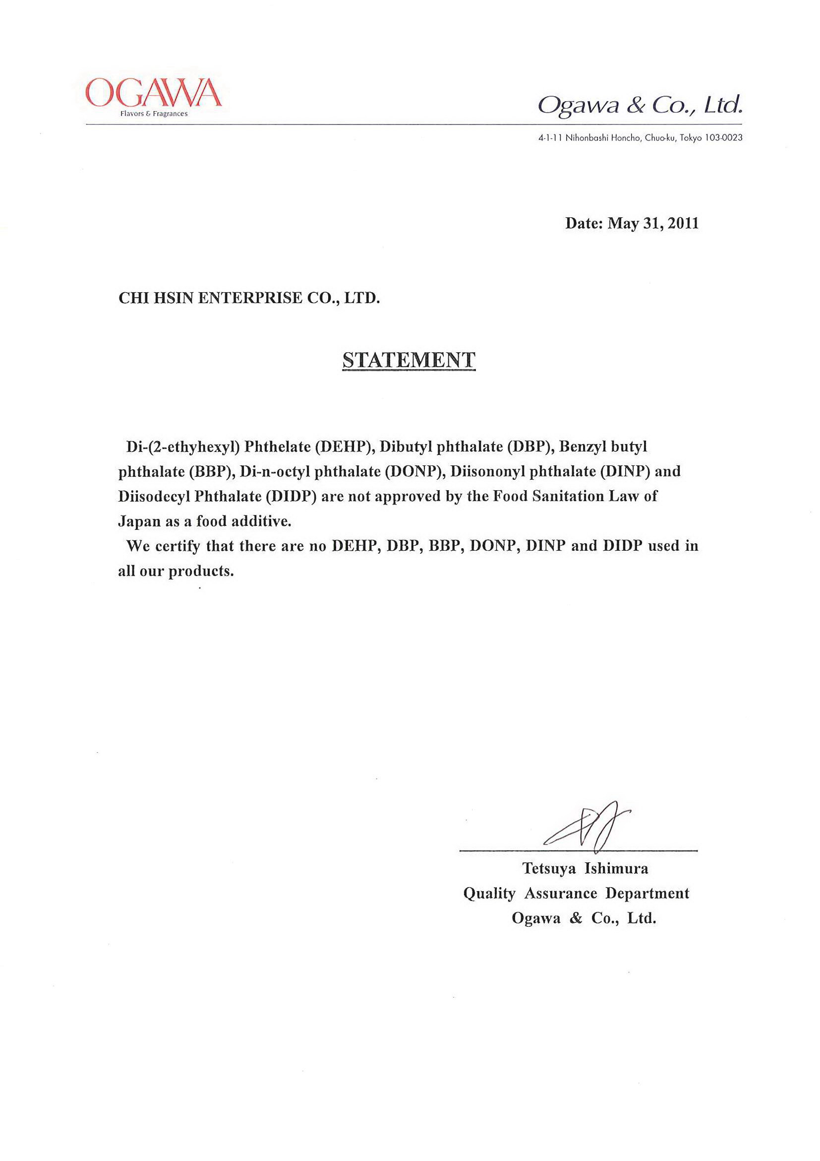 Statement of Flavo... 香料產品聲......